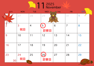 誠に勝手ながら、診察日を下記日程に変更いたします。